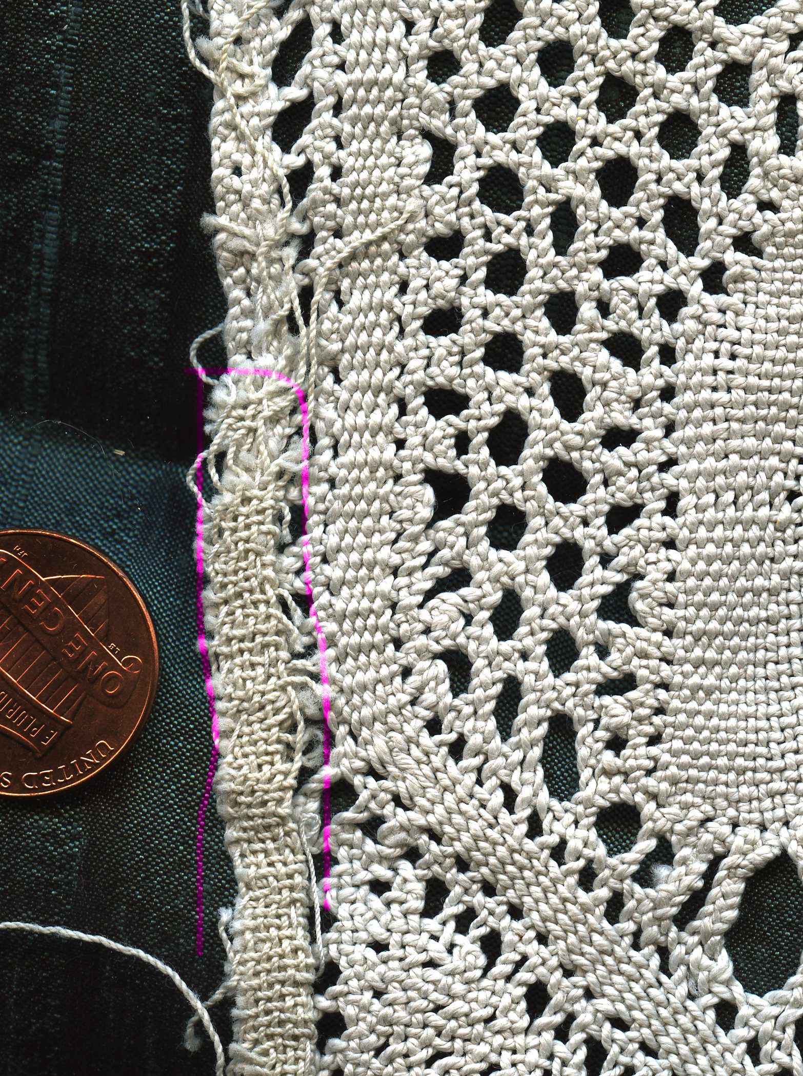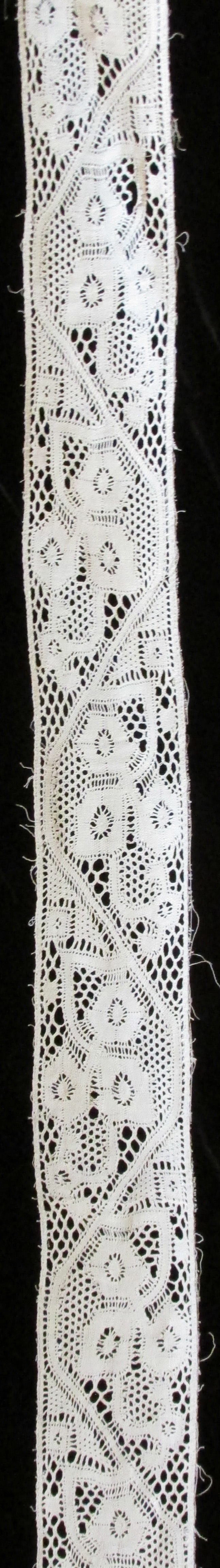 Could it have been a insertion in bed or table linens? At nearly three yards long it seems to be too long for that. Perhaps an altar cloth of some sort? No symbolism might argue against that. It obviously was well used, and apparently for a very long time.
