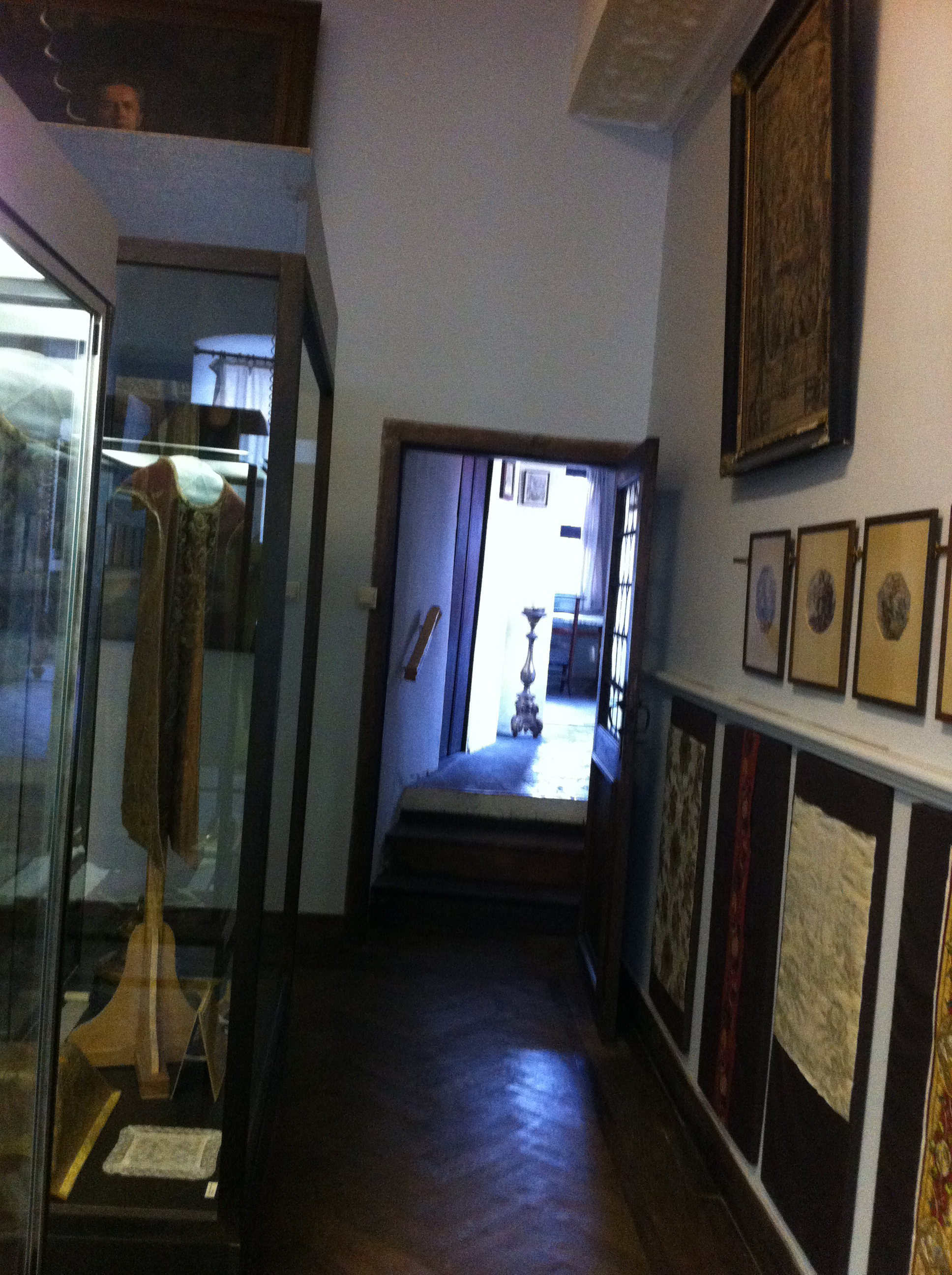 A very modest entrance fee is collected in the back of the church, and a docent led me first up a dark set of stairs in the back of the church, then along the long gallery above the main church...